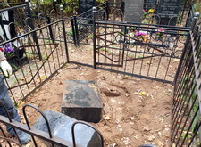 По приезду на кладбище мы осмотрели место захоронения и промерили необходимые для изготовления парного памятника параметры находящегося на могиле надгробья.